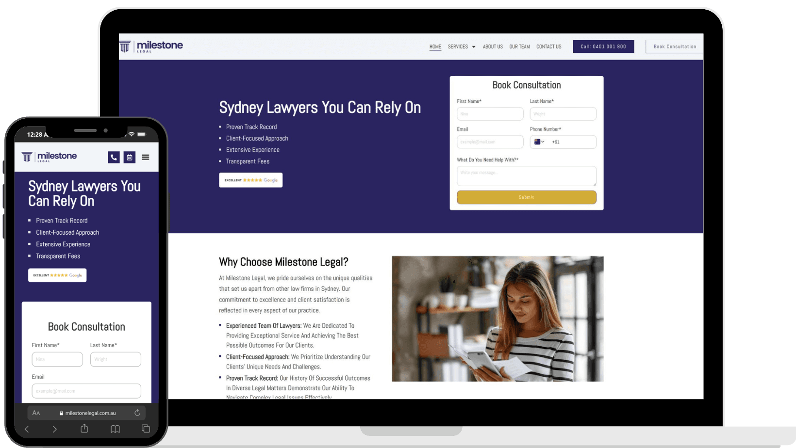 Our difference is execution and evidence: we combine SEO with a conversion‑focused website redesign and legal‑grade content, then execute without bottlenecks. Progress is shown with dated rankings and enquiry counts you can verify
