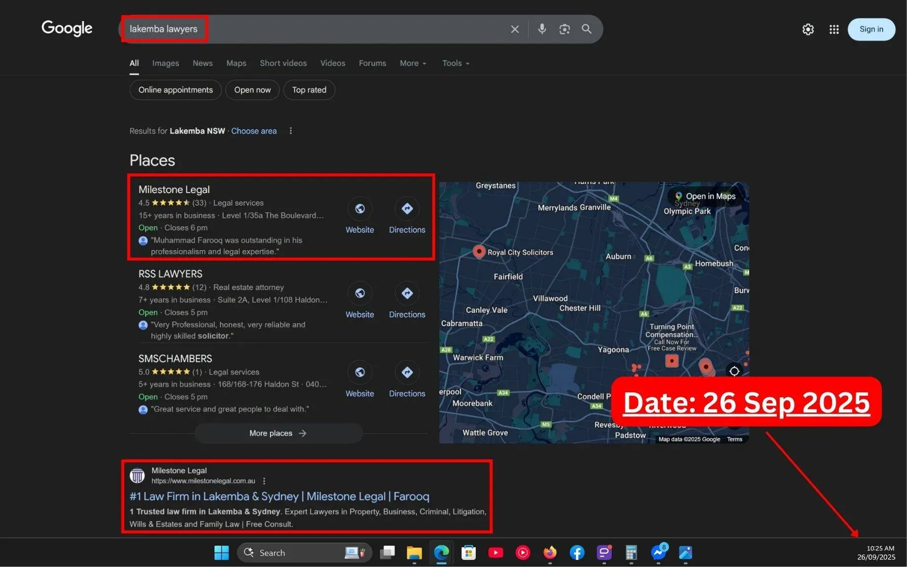 We achieved local Top‑3 dominance in 4 weeks (Milestone Legal — Lakemba)